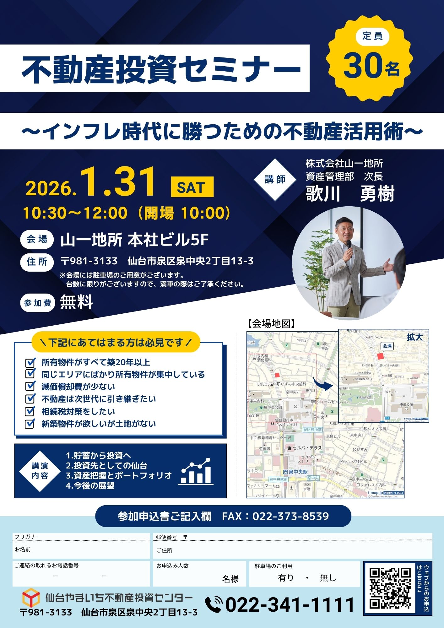 本セミナーでは、インフレ環境下における不動産の活用方法や、資産の把握・ポートフォリオの考え方、今後の市場動向について分かりやすく解説いたします。